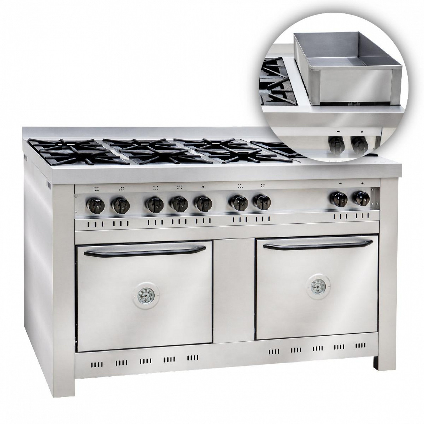• Horno: Piso en tejuelas refractarias, puerta con resorte industrial, válvula de seguridad, quemador longitudinal, pirómetro indicador de la temperatura y aislación del exterior mediante vrac, accesorios: 2 rejillas.